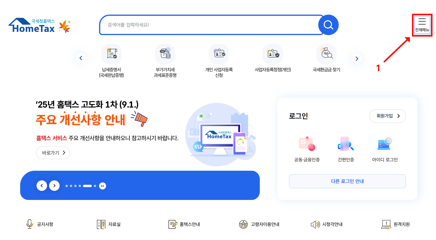 - 로그인은 공동·금융인증서나 민간인증서(카카오·토스 등) 아무거나 편한 걸로.