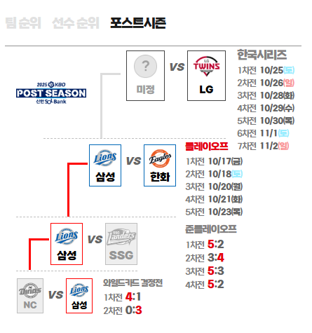 | 4차전(필요 시) | 10/21(화) | 18:30 | 한화 : 삼성 |