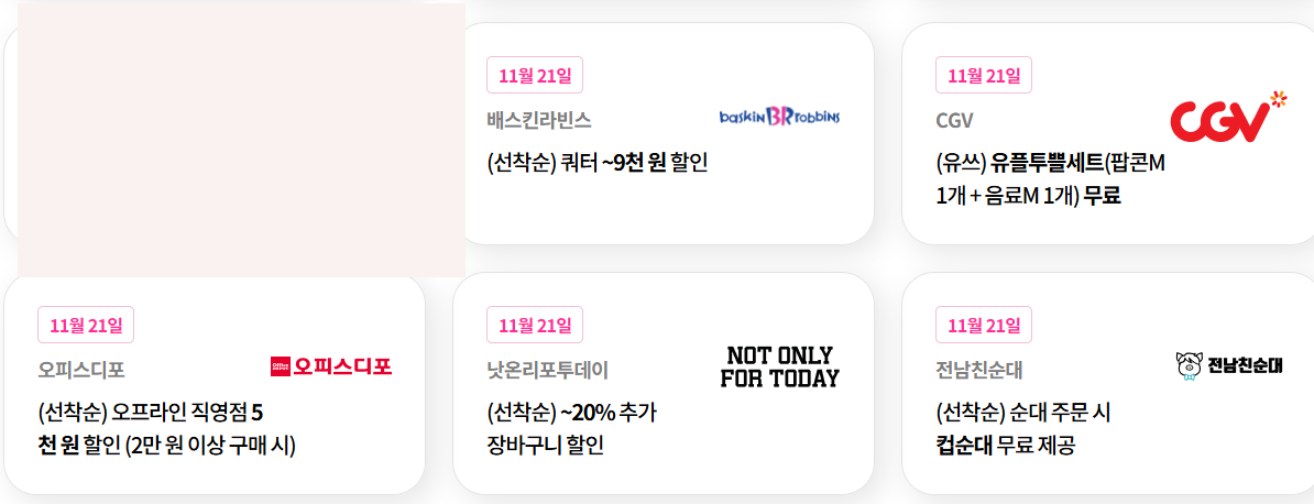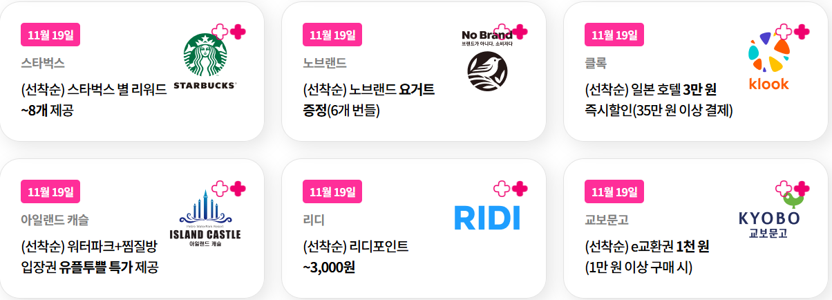 2025년 11월에도 다양한 제휴 브랜드 혜택이 날짜별로 쏟아지고 있습니다.