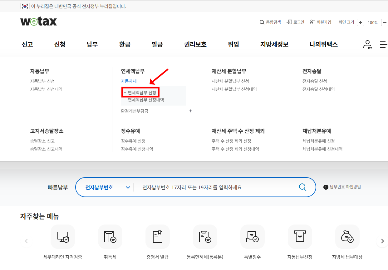 자동차세 연납 신청은 다음과 같이 간편하게 진행할 수 있습니다.
