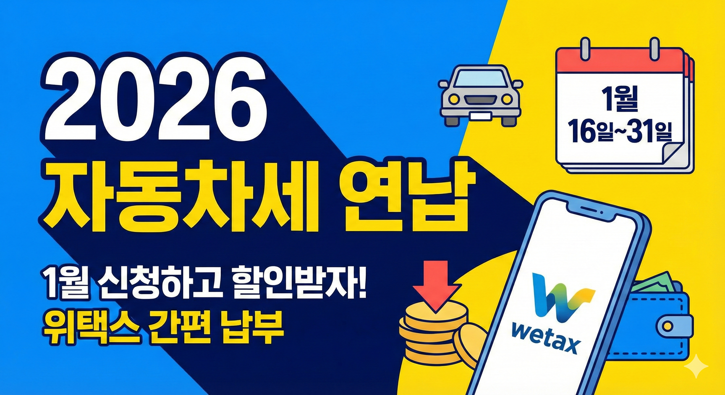 오늘은 2026년 자동차세 연납 신청 기간과 위택스(Wetax)를 이용한 간편 납부 방법, 그리고 달라지는 공제율까지 핵심만 정리해 드립니다. 기간을 놓치면 혜택이 줄어드니 꼭 확인하세요!