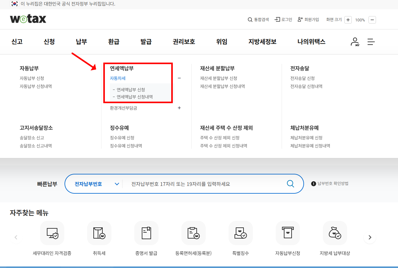 - 위택스(wetax.go.kr) 접속